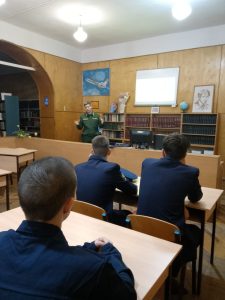 12 ноября в читальном зале библиотеки состоялась встреча курсантов со Старшим государственным инспектором Департамента лесного хозяйства по Центральному Федеральному Округу Барановым Дмитрием Александровичем. В ходе беседы он рассказал ребятам о том, какие бывают леса, как они делятся на участки и квадраты на специальной лесной карте, что означают буквы и цифры на столбах, которые можно встретить в лесу, как не заблудиться в дремучем лесу. А также как защищается лес от пожаров, незаконной вырубки, а деревья- от болезней. Как вести себя в лесу, не нарушая законов. Особое внимание Дмитрий Александрович посвятил пополнению лесных ресурсов, он рассказал, как добываются семена хвойных пород деревьев, как они просушиваются, готовятся к посадке, а также как готовится к этому почва в специально отведённых для этого местах. Ну и самое главное-высадка маленьких сосенок и ёлочек, это всё делается и машинами и вручную. Одним словом, с показом презентации Дмитрий Александрович рассказал о такой нелегкой, но интересной профессии лесника. Предложил ребятам весной поучаствовать в высадке маленьких деревьев на территории города или района, на что ребята сказали, что с удовольствием. Встреча прошла в тёплой и доверительной обстановке.